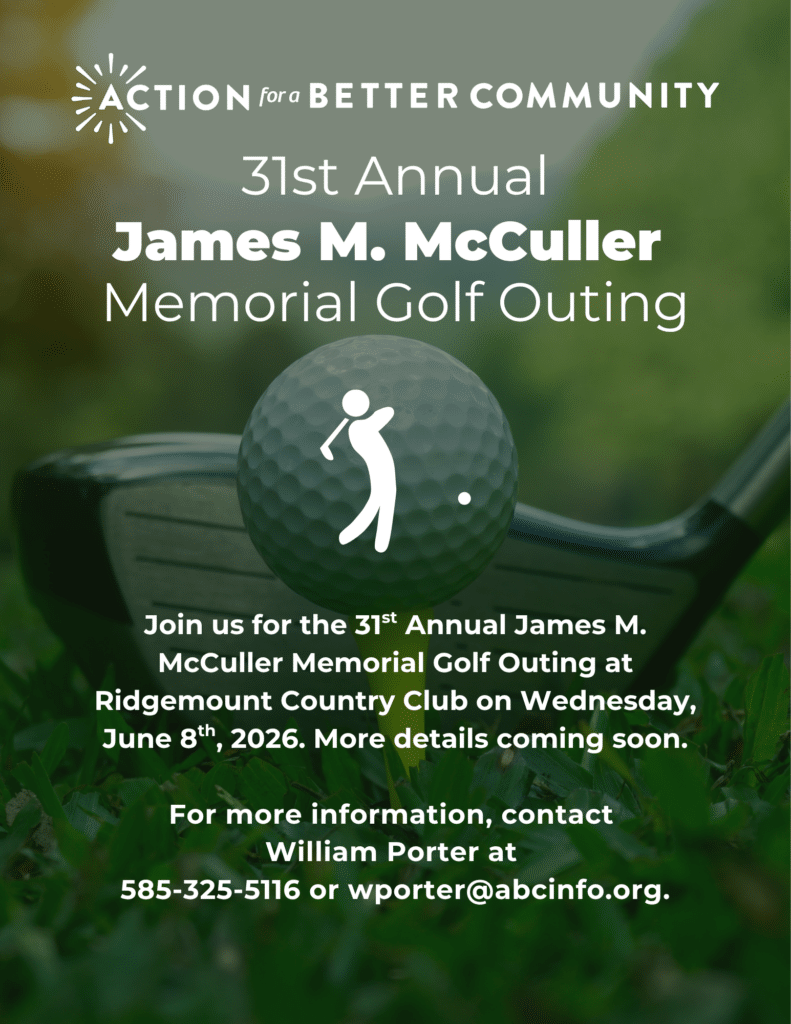 31st Annual James M. McCuller Memorial Golf Outing + Add to Google Calendar + iCal / Outlook export Date Jun 08 2026 Time All Day Location Ridgemont Country Club 3717 W. Ridge Rd., Rochester, NY Organizer William Porter Email wporter@abcinfo.org Share this event